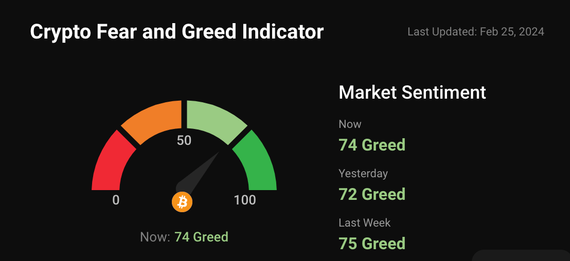 The market sentiment has greed levels in the higher range with current Bitcoin and Altcoin rally