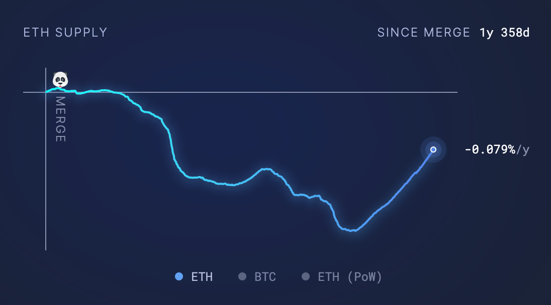 Let's have a look at Ethereum supply changes post its merge to a PoS blockchain from PoW.