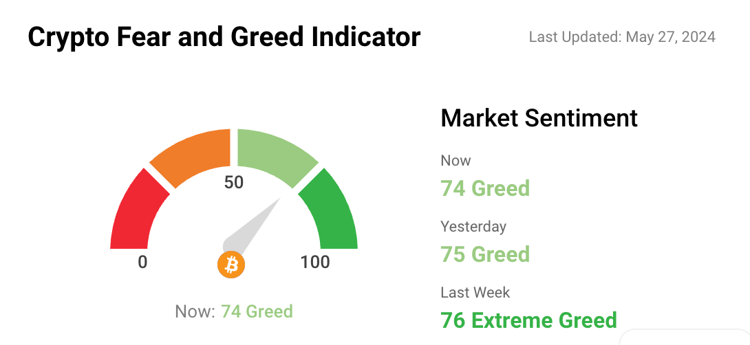 The market sentiment has been up for a few weeks now with Greed levels staying high even as the global economy is in turmoil